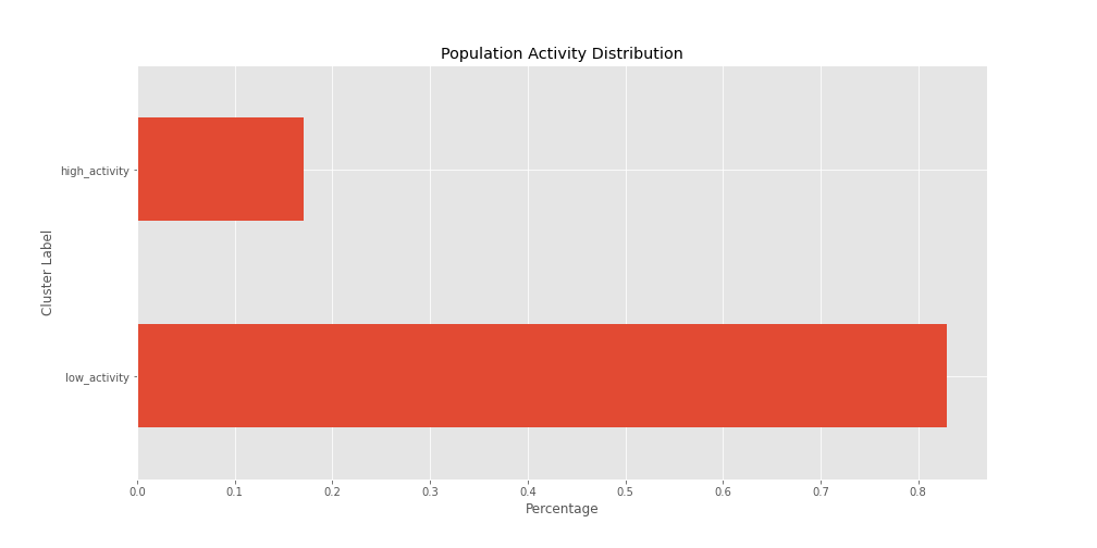 As expected, 83% of our sample is composed by low activity accounts, while 17% of it is taken by high activity accounts.